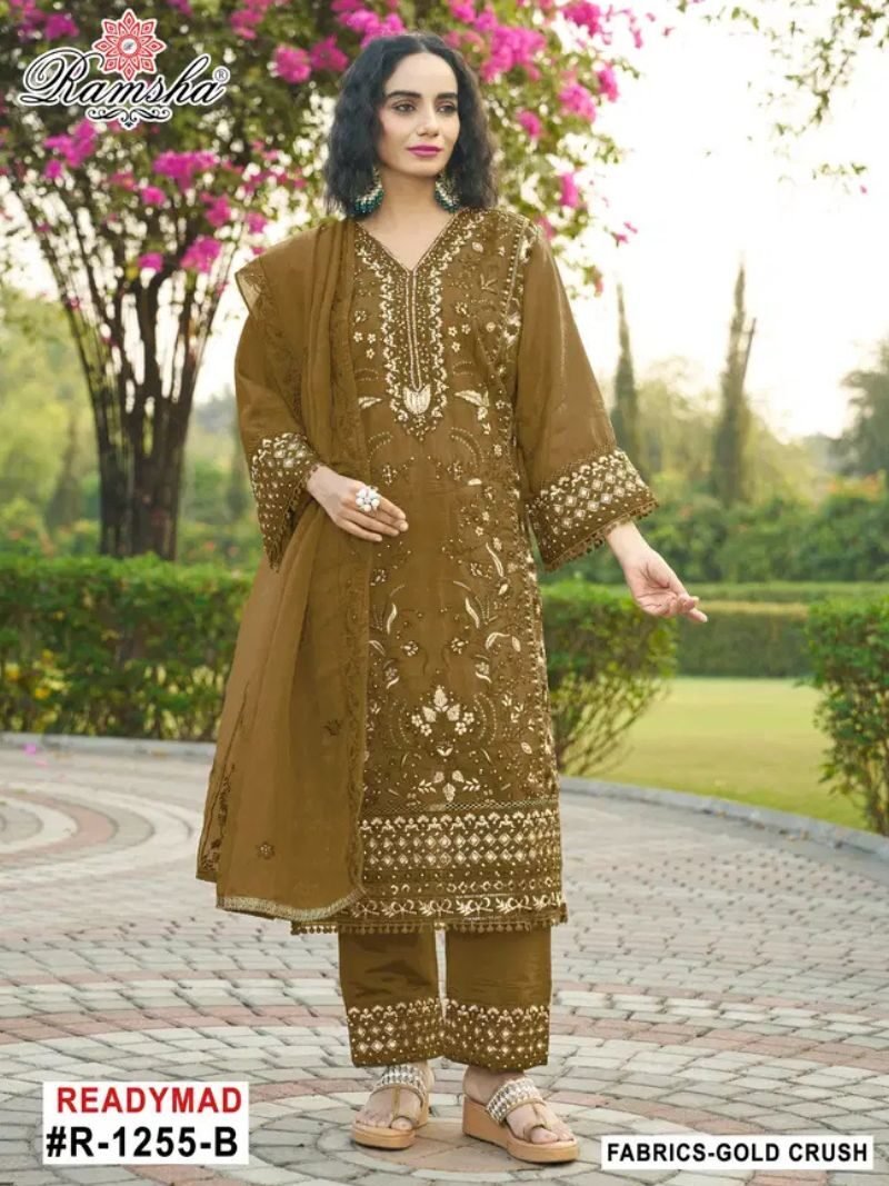 Ramsha R 1255 Nx Gold Crush Pakistani Readymade Suits Wholesale Catalog