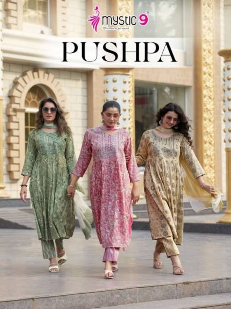 Mystic 9 Pushpa Vol 1 Rayon Capsule Foil Printed Wholesale Kurti With Bottom Dupatta Catalog