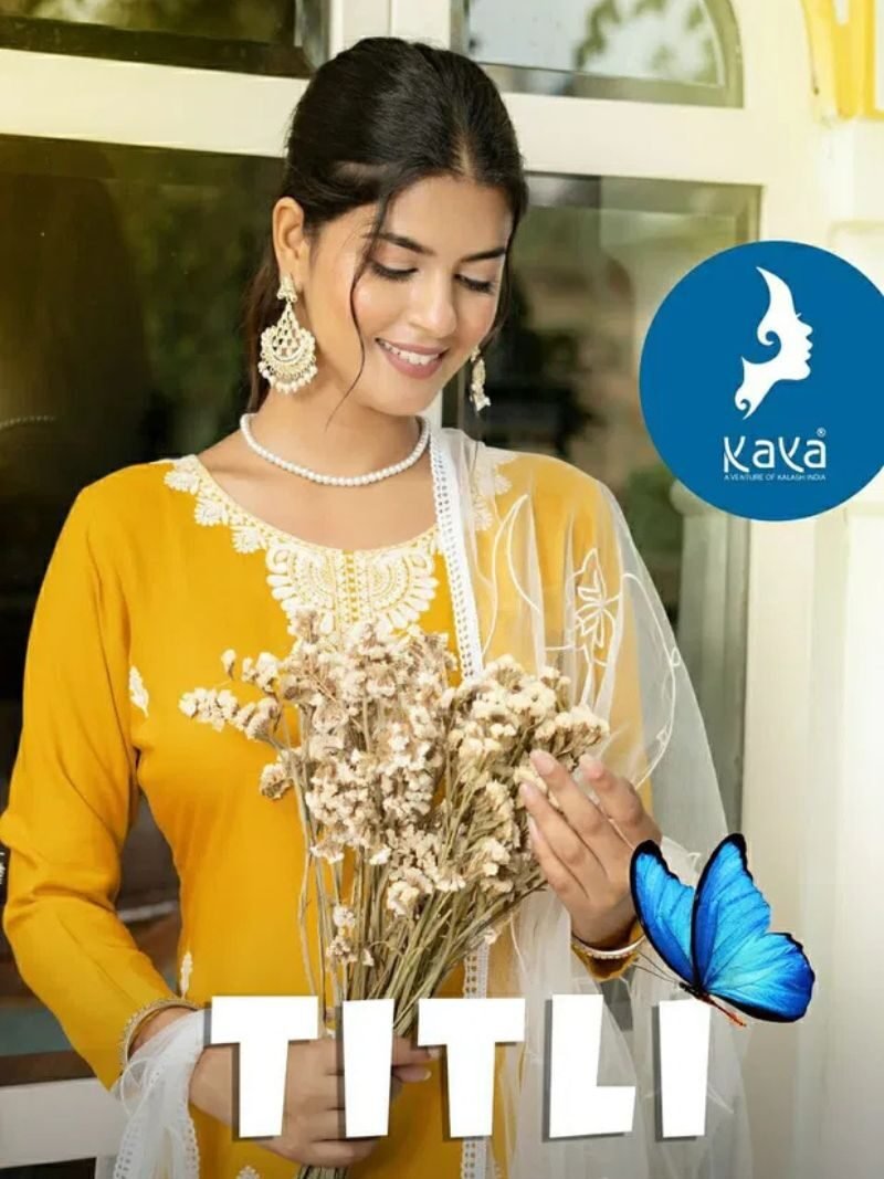 Kaya Titli Rayon Designer Kurti With Bottom Dupatta Wholesale Catalog