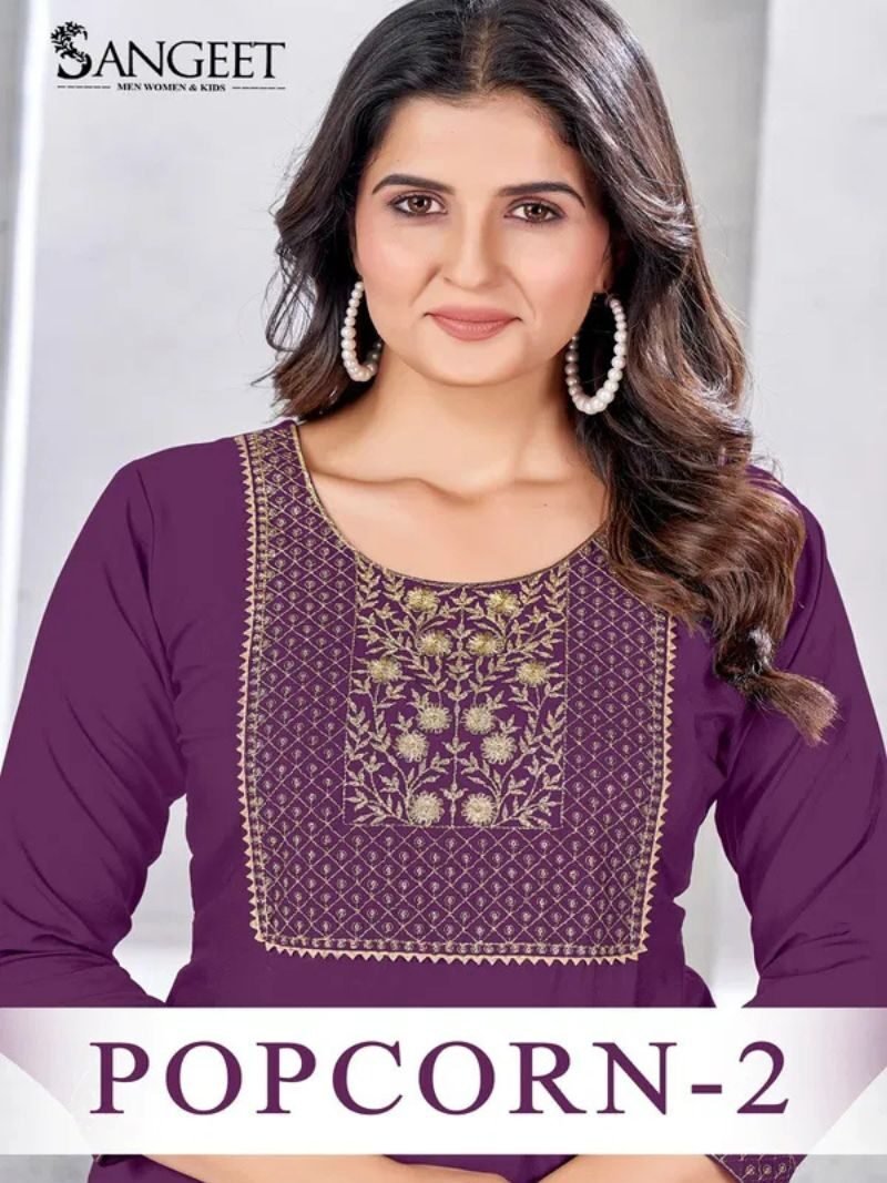 Sangeet Popcorn 2 Rayon Embroidery Daily Wear Kurtis Wholesale Catalog