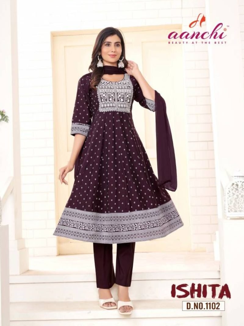Aanchi Ishita Roman Designer Anarkali Kurti With Bottom Dupatta At Wholesale Price