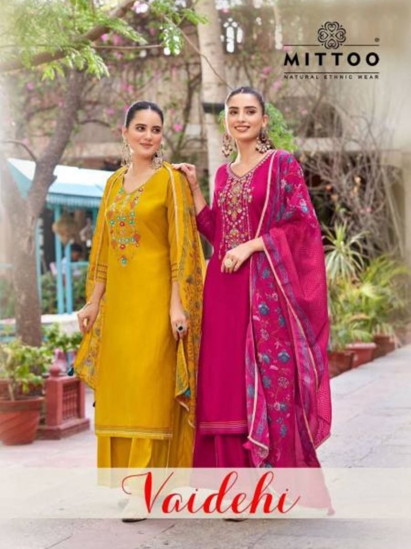 Mittoo Vaidehi Rayon Weaving Designer Wholesale Kurti With Bottom Dupatta Catalog