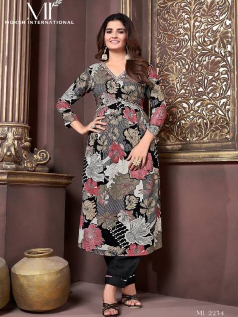 Moksh Afgani Alia Vol 1 Printed Rayon Alia Cut Kurti With Bottom Dupatta At Wholesale Price