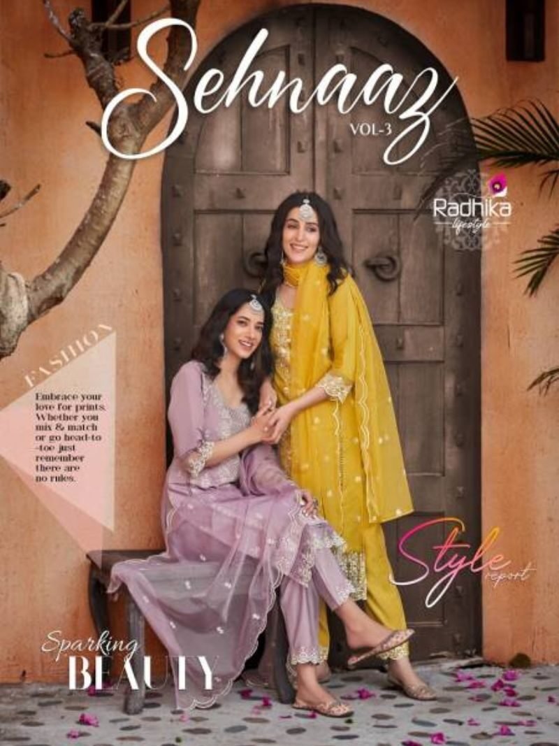 Radhika Sehnaz Vol 3 Ethnic Wear Ladies Kurtis With Bottom Dupatta At Wholesale Price