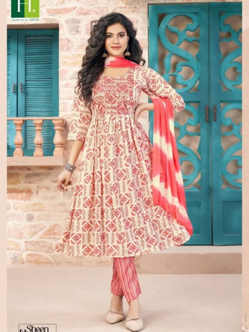 Hirwa Sheen Printed Naira Cut Plus Size Kurti With Bottom Dupatta Wholesale At Price