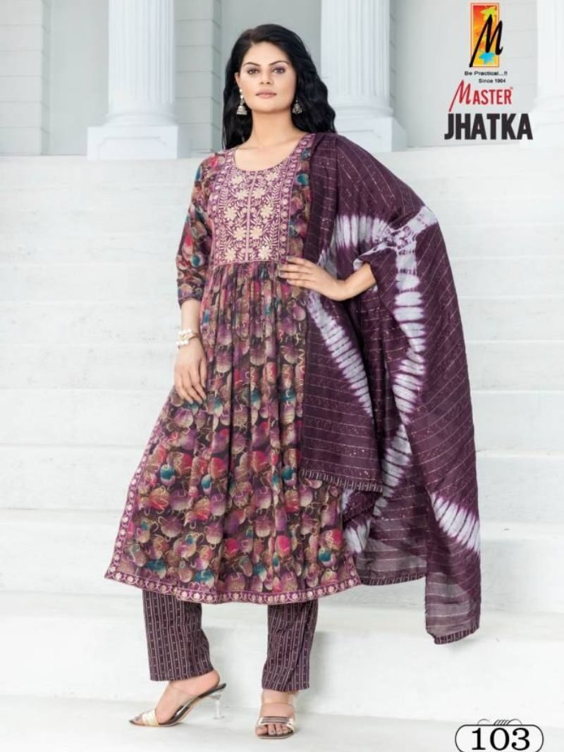 Master Jhatka Nayra Cut Printed Ladies Kurtis With Bottom Dupatta At Wholesale Price