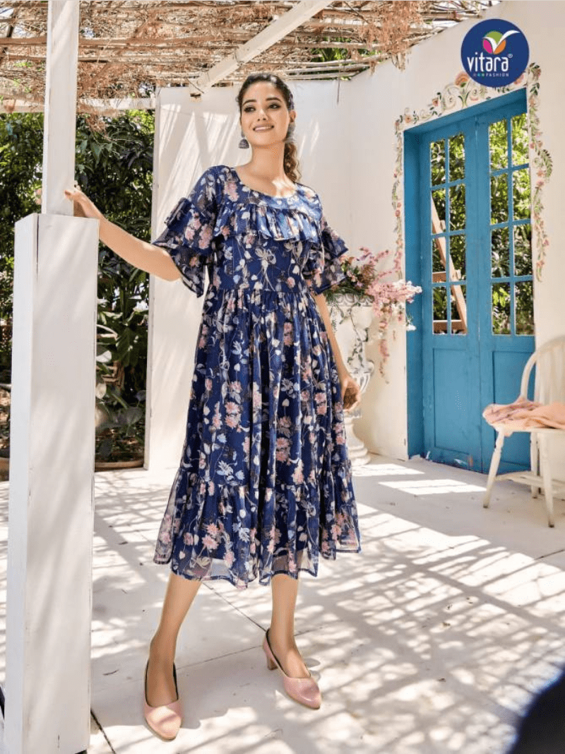 Vitara Georgia Party Wear Floral Printed Kurtis Wholesale Catalog