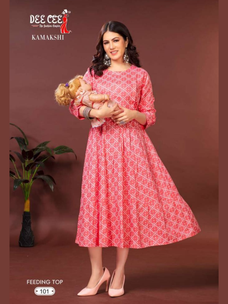 Deecee Kamakshi Rayon Printed Feeding Kurtis Wholesale Catalog