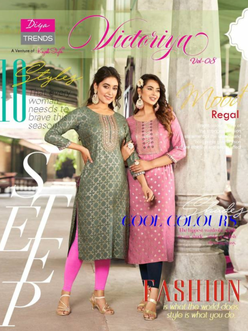 Diya Victoria Vol 8 Rayon Foil Printed Wholesale Kurtis For Women