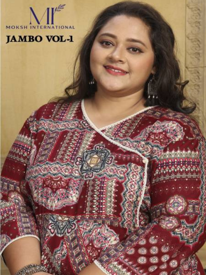 Moksh Jambo Vol 1 Fancy Rayon Printed Plus Size Kurtis Wholesale Catalog