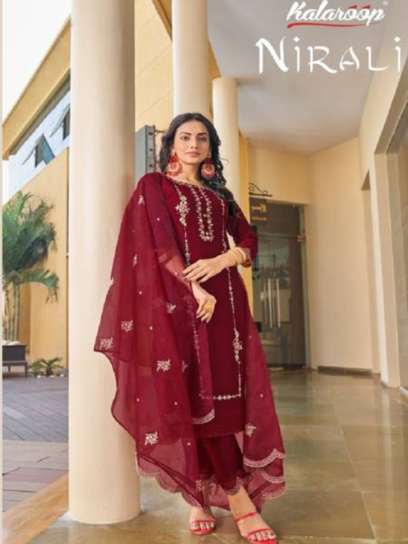 Kalaroop Nirali Dazzle Embroidery Wholesale Kurti With Bottom Dupatta Catalog