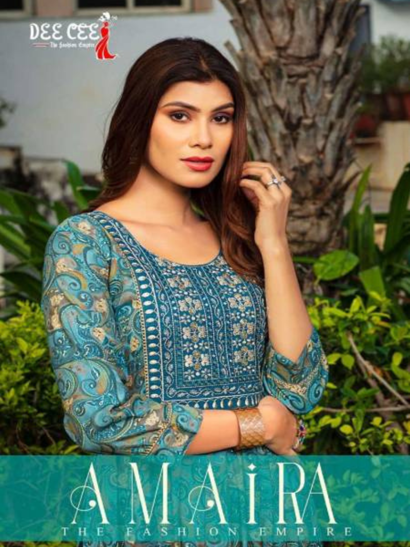 Deecee Amaira Fancy Chanderi Print Embroidered Flared Long Kurtis Wholesale Catalog