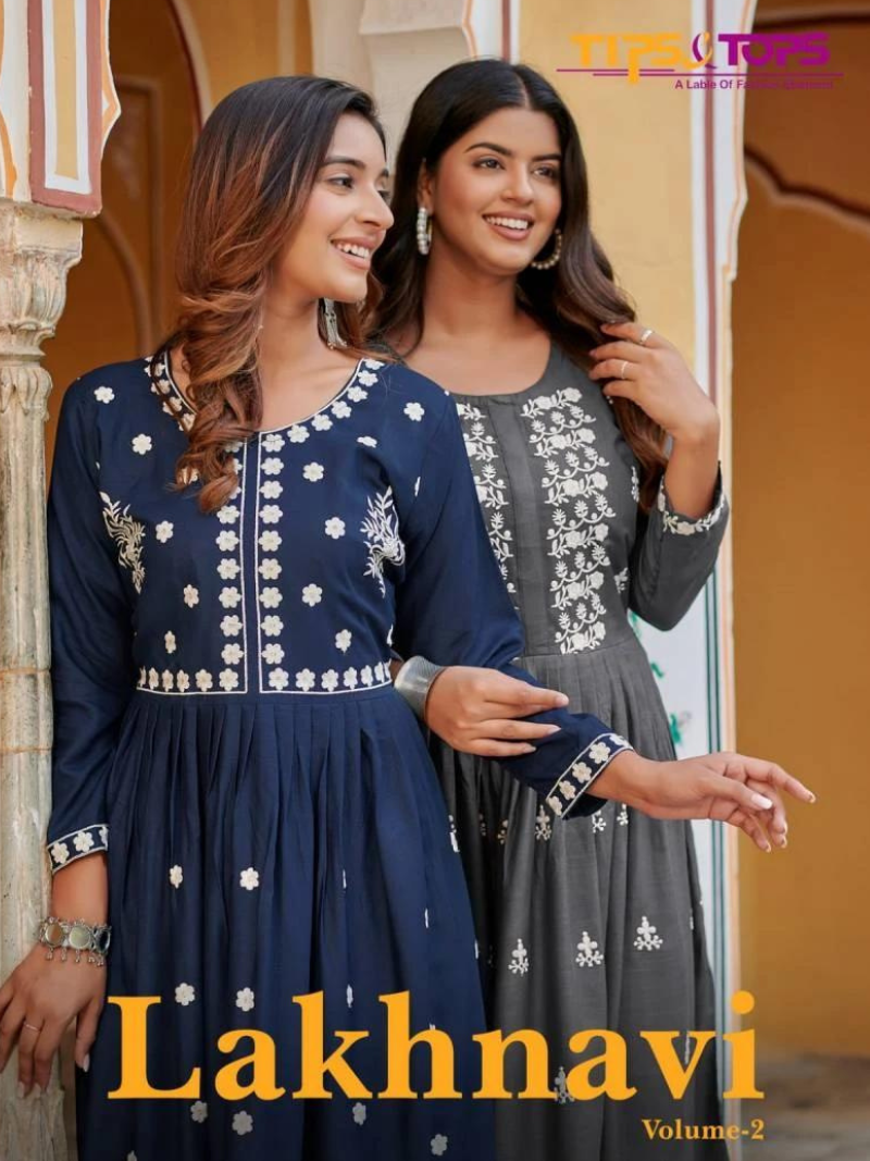 Tips And Tops Lakhnavi Vol 2 Thread Embroidery Rayon Ladies Kurtis Wholesale Catalog