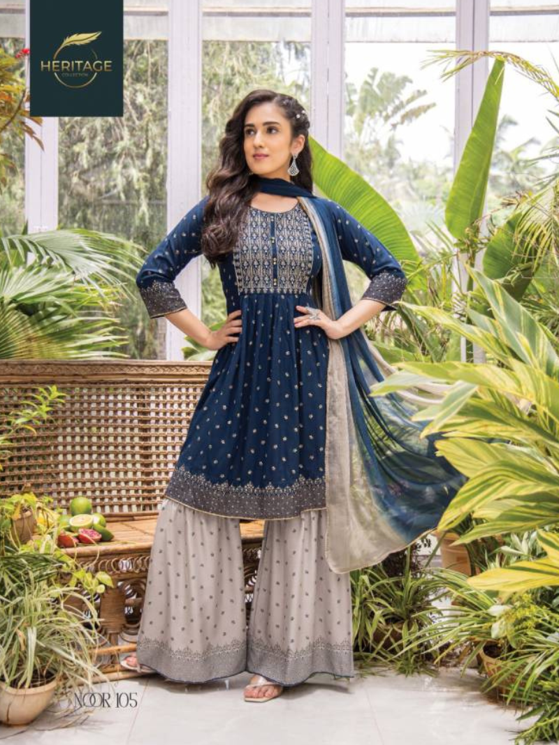 Heritage Noor Festive Wear Sharara Kurti With Bottom Dupatta Wholesale Catalog