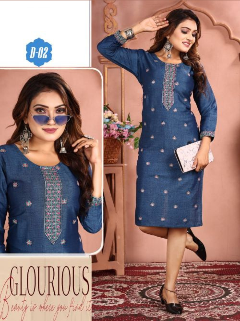 Kinti Simona Fancy Embroidery Designer Ladies Kurtis Wholesale Catalog