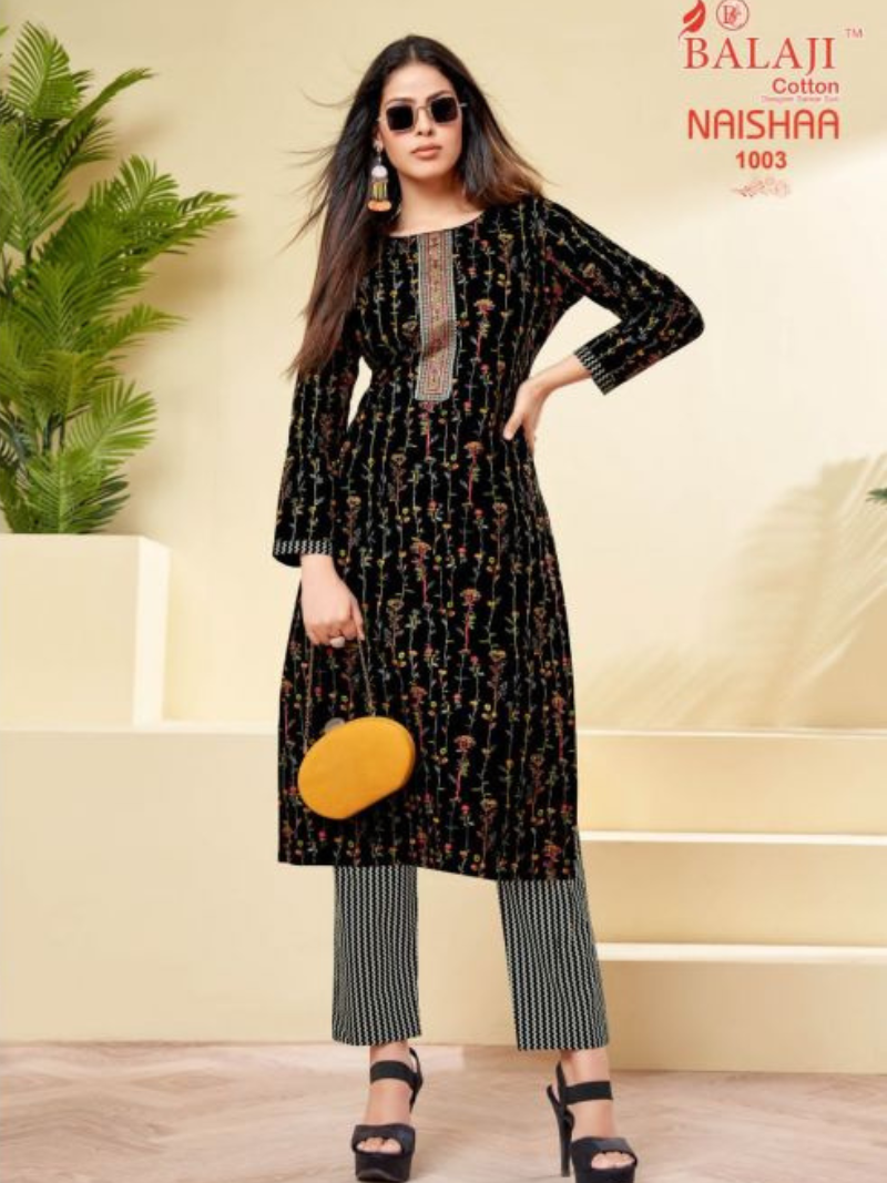 Balaji Naishaa Vol 1 Regular Wear Printed Cotton Kurti Pant Wholesale Catalog
