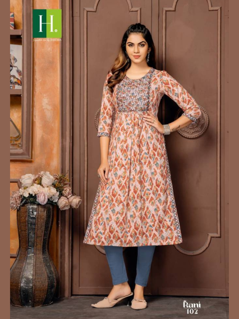 Hirwa Rani Printed Designer Rayon Kurtis Wholesale Catalog