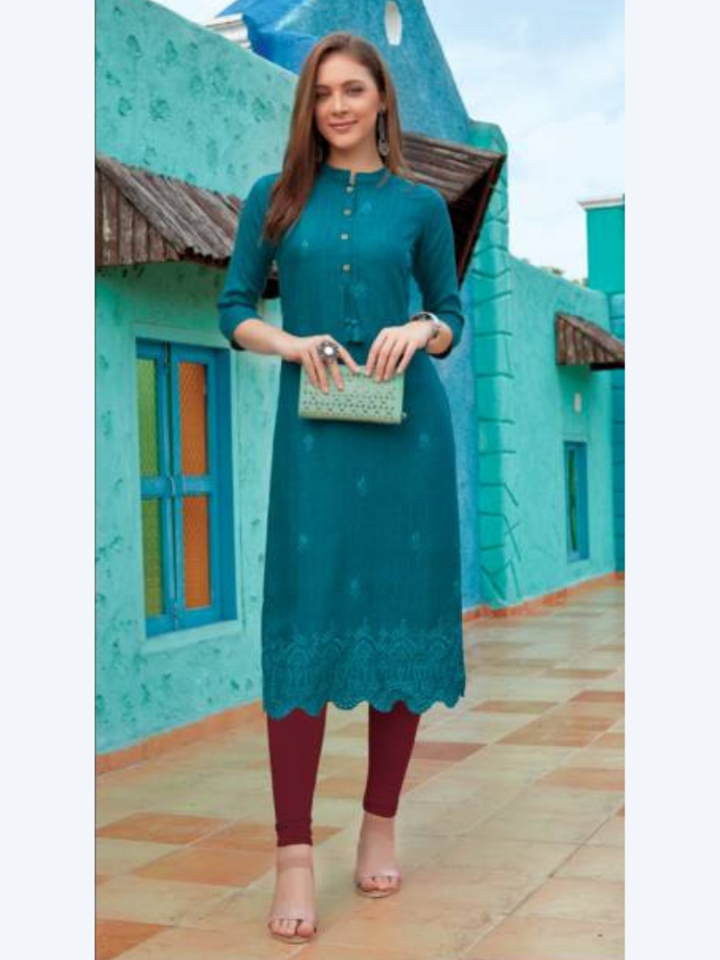 Rung Hinaz Office Wear Designer Rayon Wholesale Kurtis Catalog