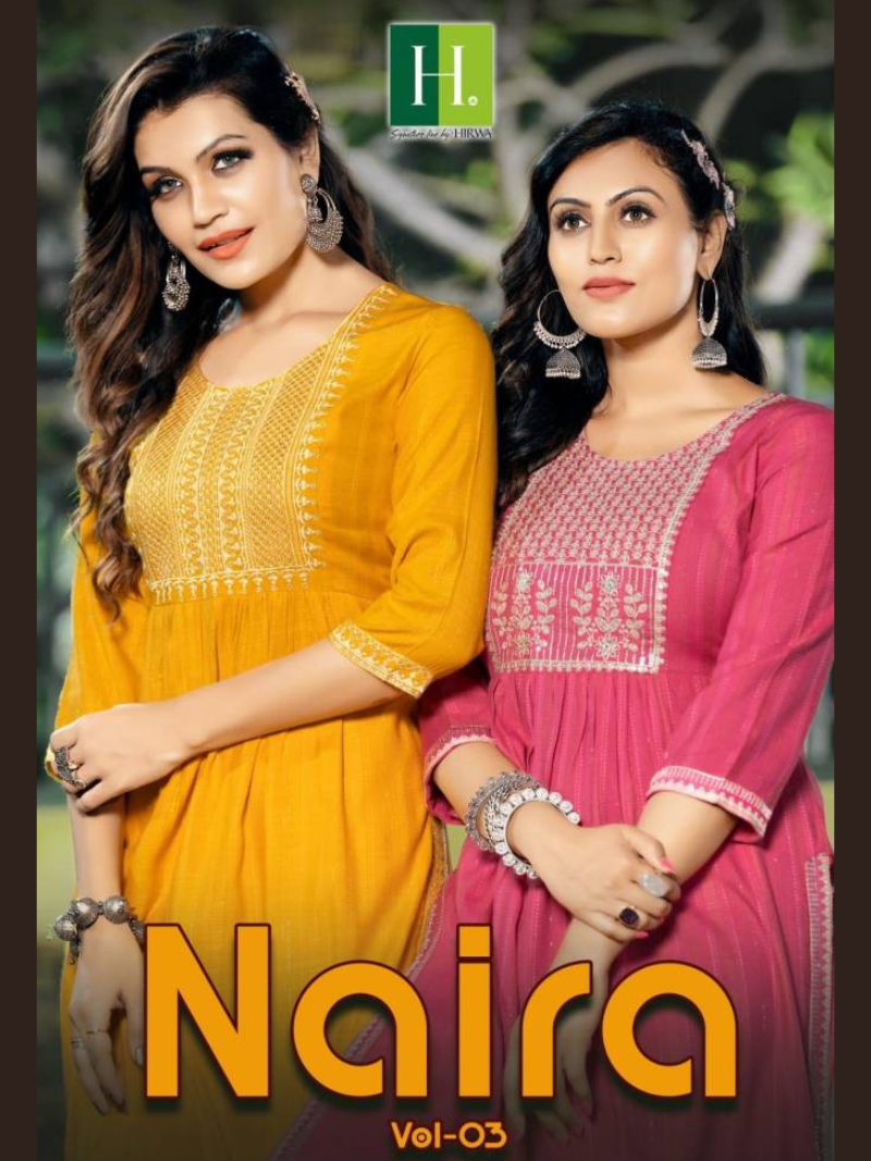 Hirwa Naira Vol 3 Party Wear Naira Style Rayon Kurtis Wholesale Catalog