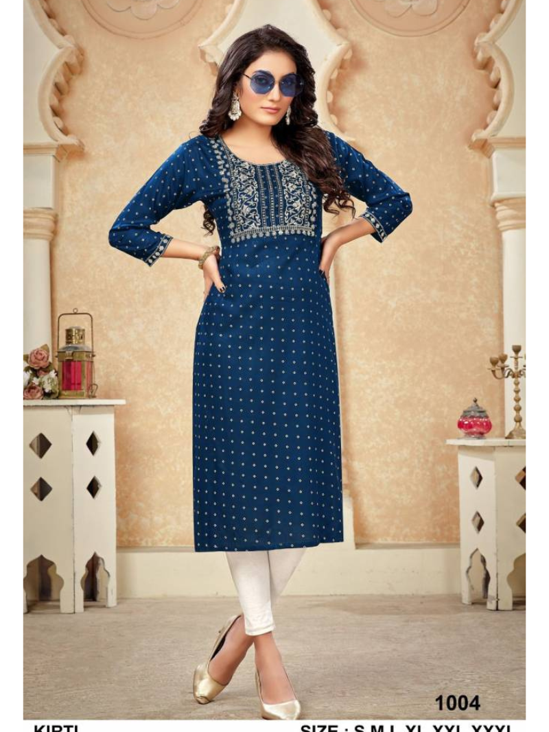 Kirti 1001 Printed Designer Rayon Ladies Kurtis Wholesale Catalog