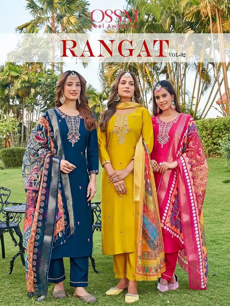 Ossm Rangat Vol 2 Viscose Embroidery Designer Kurti With Bottom Dupatta Wholesale Catalog