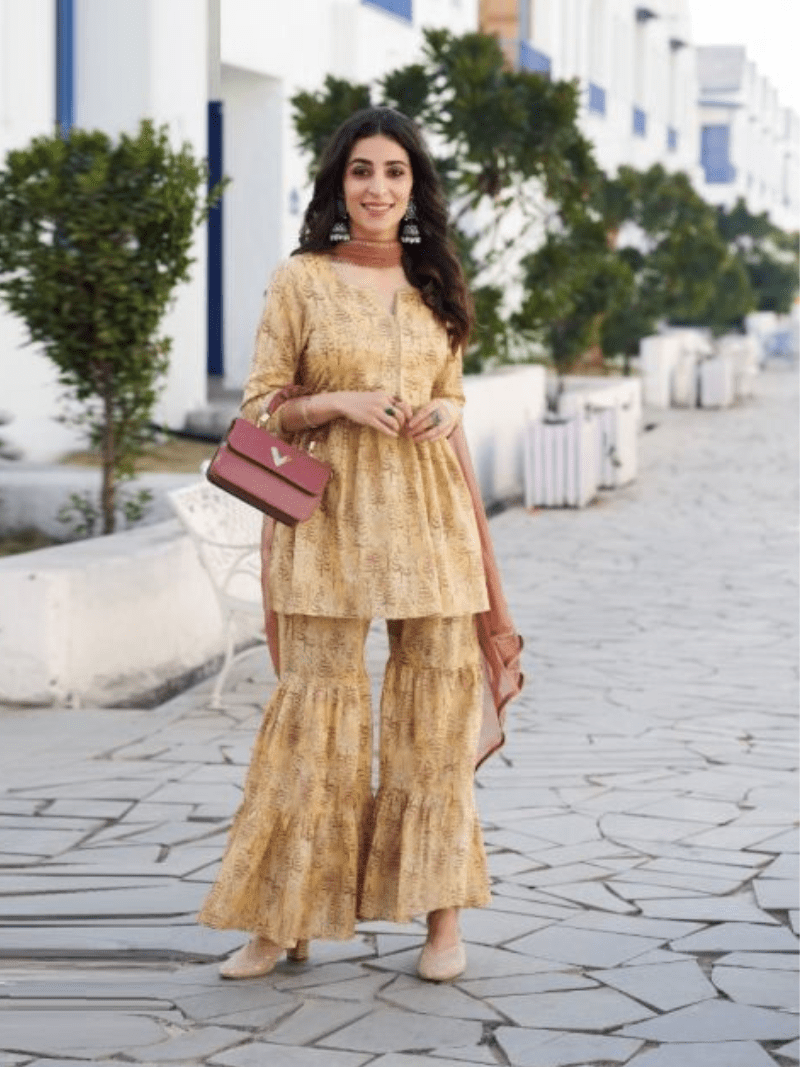 100 Miles Samsara Printed Designer Sharara Style Kurti With Bottom Dupatta Collection At Wholesale Price