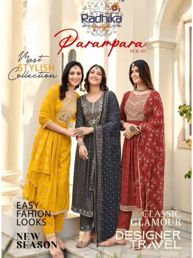 Radhika Parampara Vol 1 Rayon Kurti With Bottom Dupatta Collection At Wholesale Price