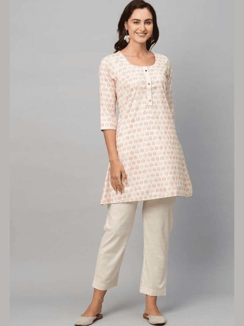 Four Buttons Raina Cotton Kurti With Bottom Collection At Wholesale Price