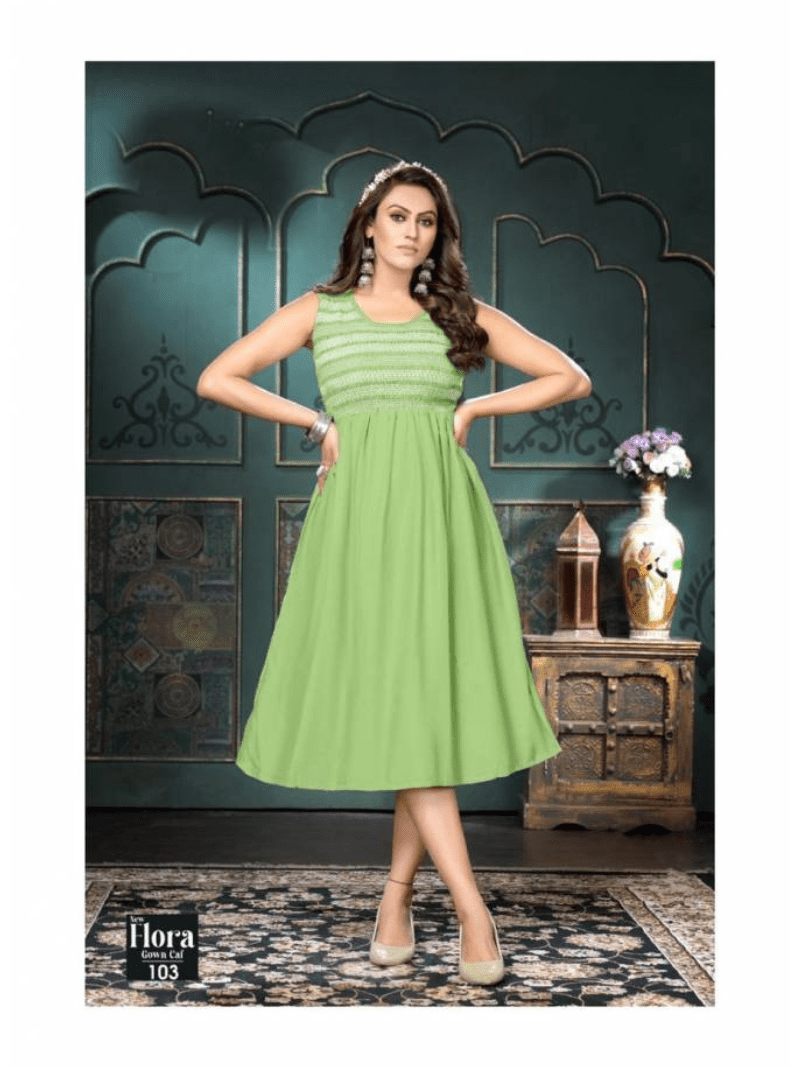 New Flora Gown Cal By Trendy Party Wear Kurtis Collection At Wholesale Price