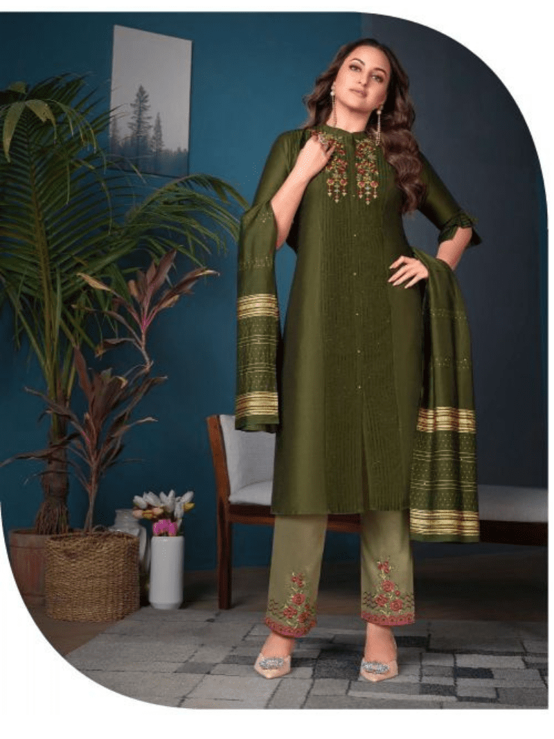 Paradise 8 Wanna You Super Fancy Rayon Hand Work Kurti With Pant & Dupatta Collection At Wholesale Price