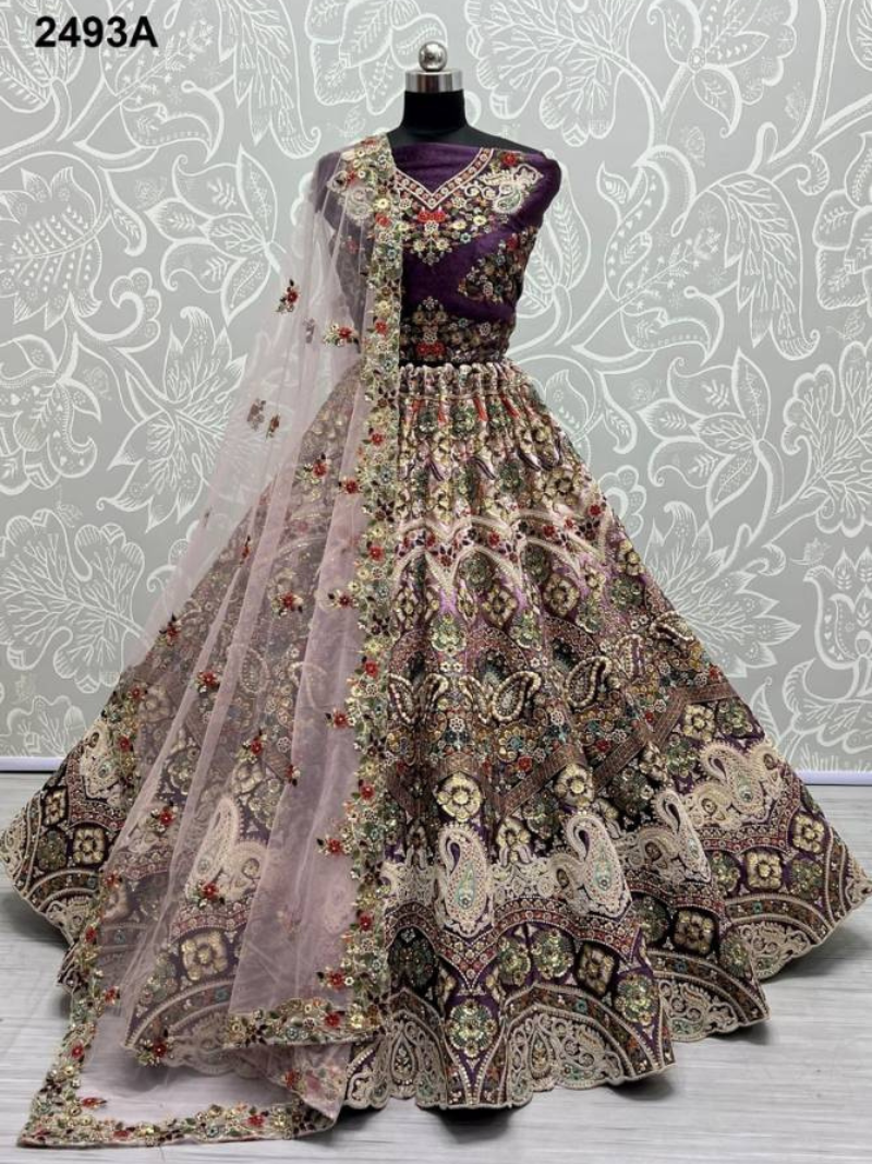 Anjani Art 2493 Colors Heavy Designer Velvet Lehenga Choli At Wholesale Price
