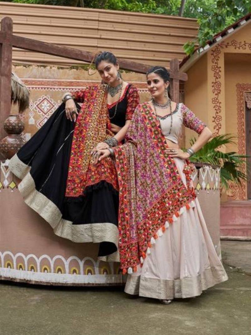 KA 5036 Kora Cotton Navaratri Special Mom Daughter Lehenga Choli At Wholesale Price