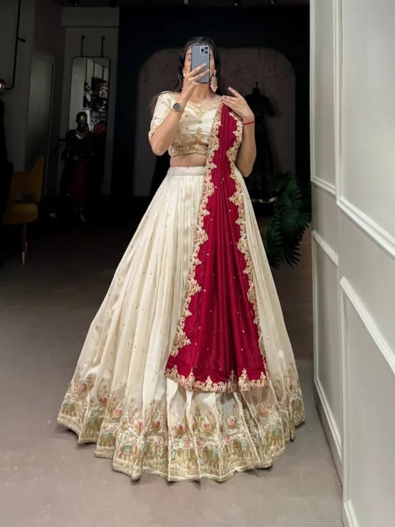 LNB 1411 Off White Vichitra Silk Designer Wedding Wear Lehenga Choli At Wholesale Price