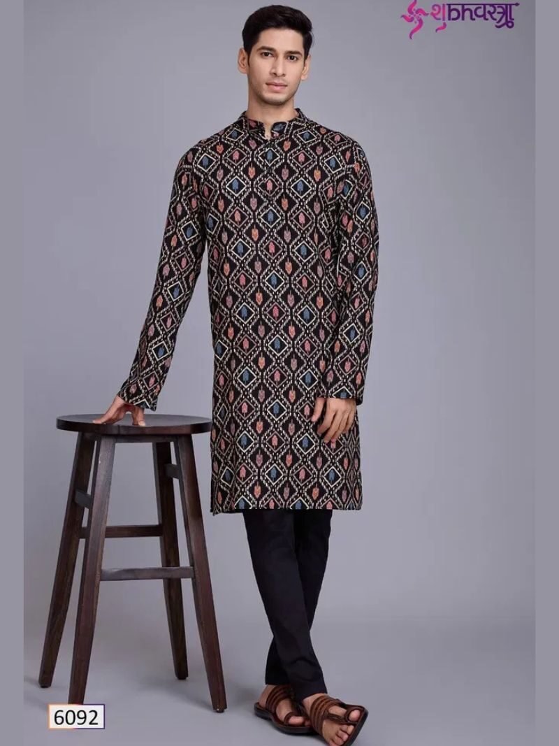 Lucknowi Works Digital Printed Mens Kurta At Wholesale Price