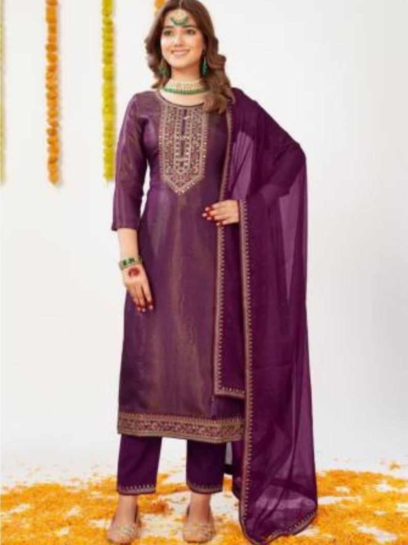 Four Dots Rang Rasiya Silk With Embroidery Non Catalog Indian Dress Materials At wholesale Price