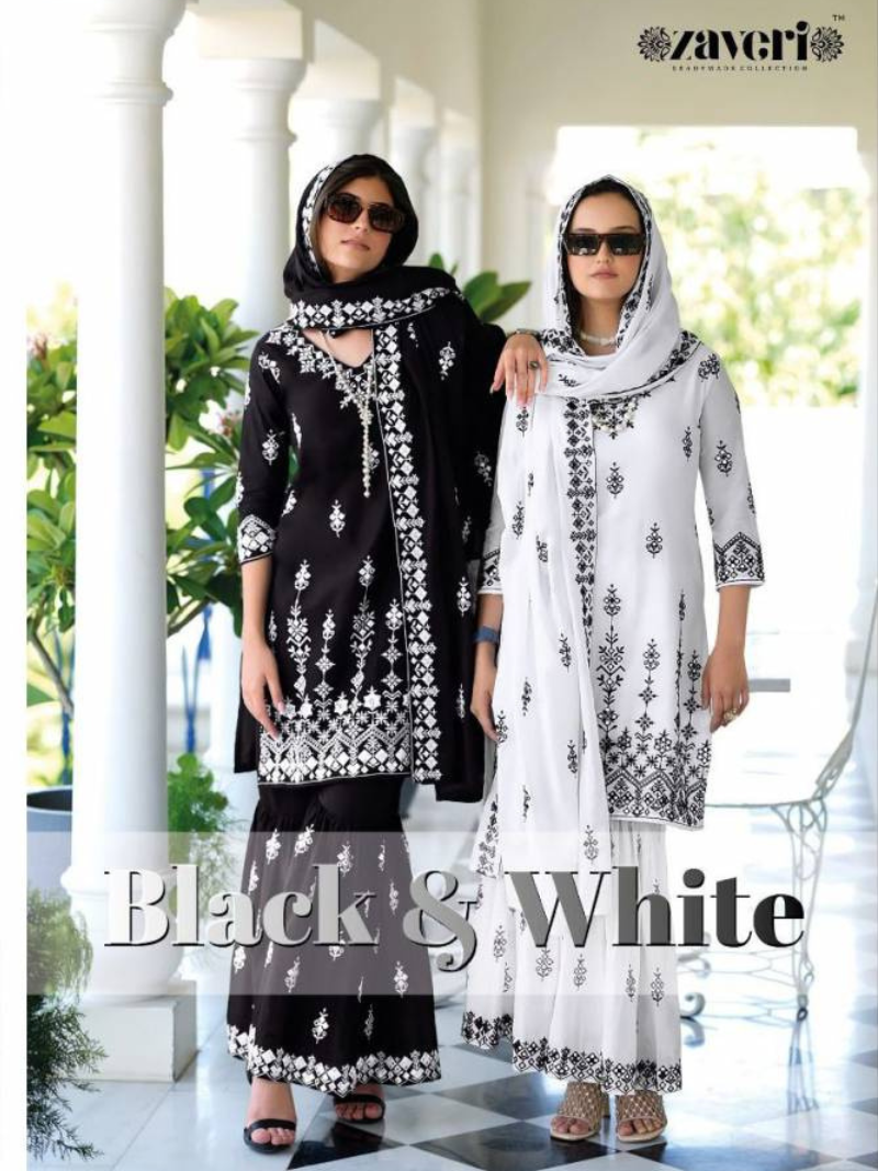 Zaveri Black and White Readymade Sharara Suits Wholesale Catalog