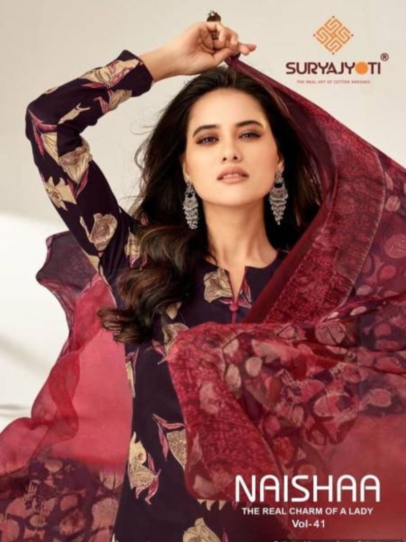 Suryajyoti Naishaa Vol 41 Jaam Satin Printed Dress Material At Wholesale Price
