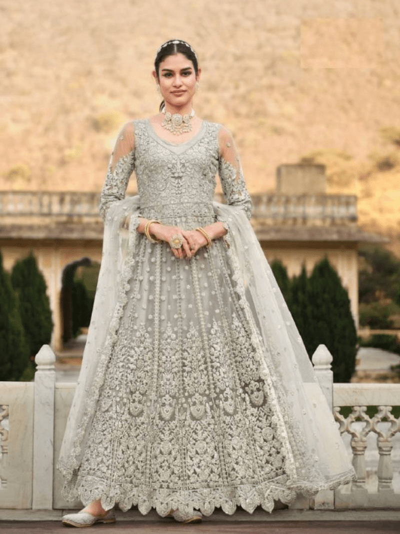 Dani Fshion Aanaya Embroidered Designer Net Gown Collection At Wholesale Price