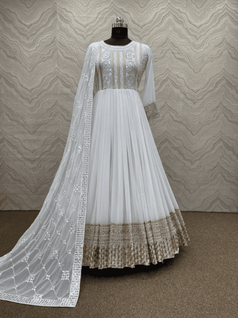 Bk 8754 Ethnic Wear Readymade Georgette Wholesale Gown Catalog