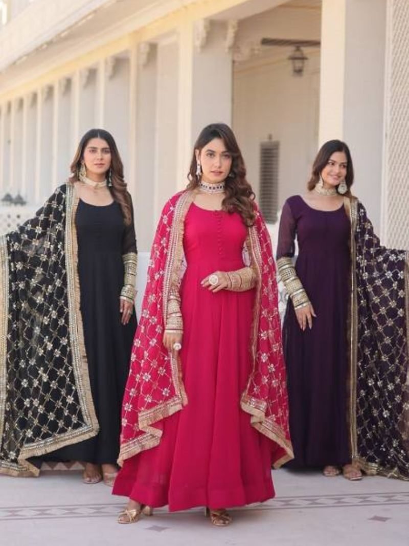 KA 1070 Designer Party Wear Faux Blooming Gown With Dupatta Wholesale Catalog