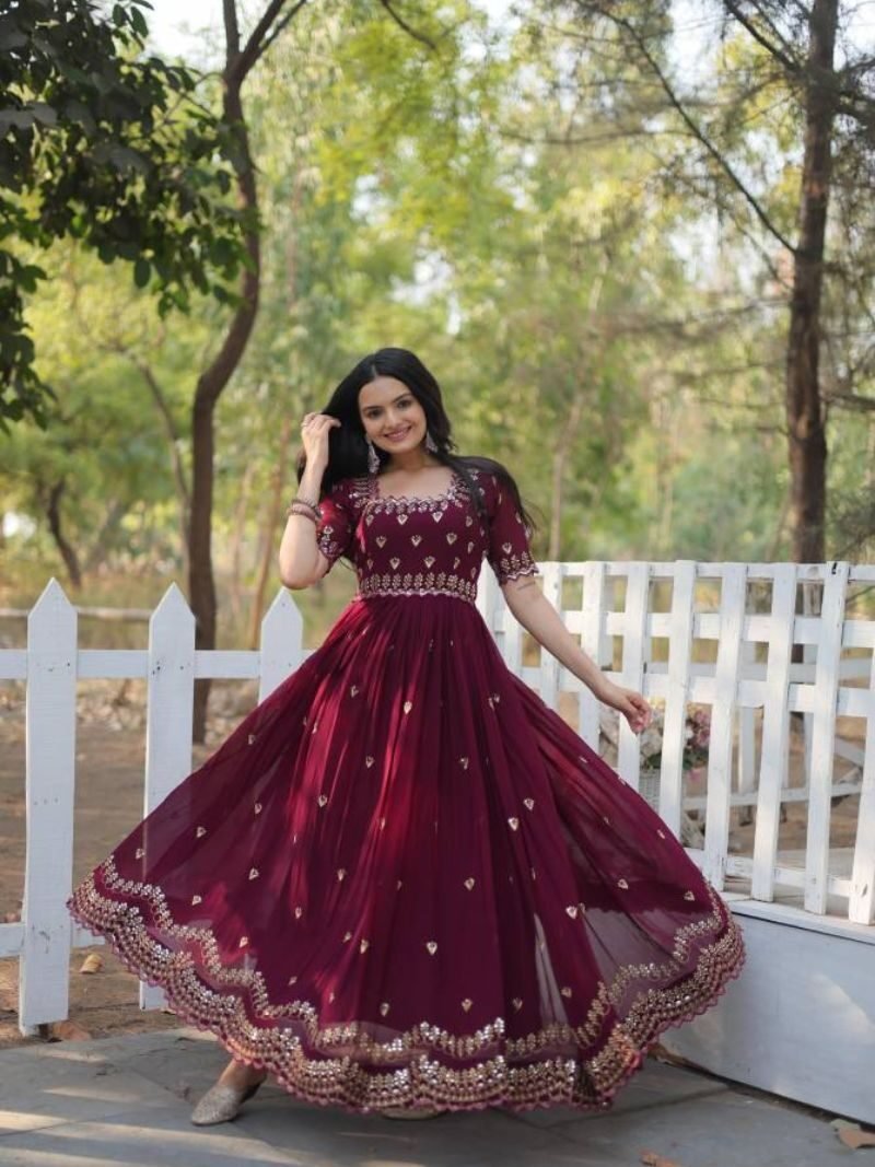 KA 1105 Party Wear Embroidery Designer Gown At Wholesale Price