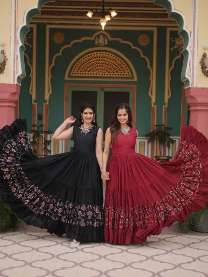 Vol 81 Festive Wear Designer Flair Long Rayon Printed Gown At Wholesale Price