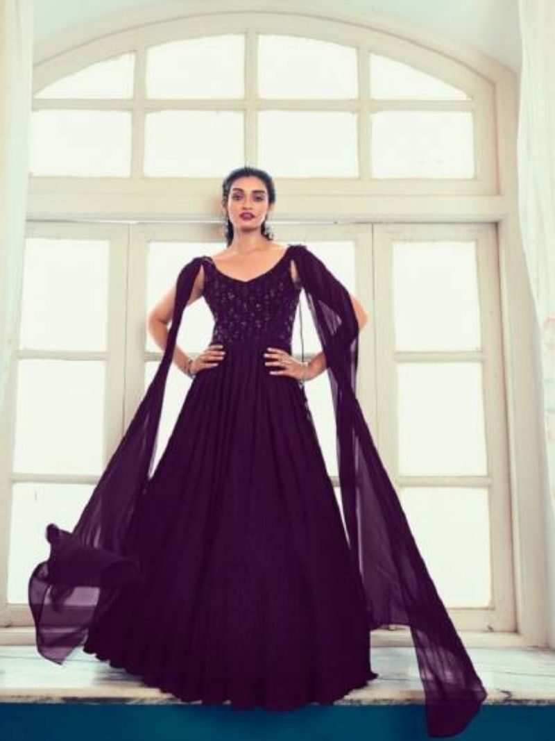 N F Gown 024 Party Wear Embroidery Work Gown Wholesale Catalog