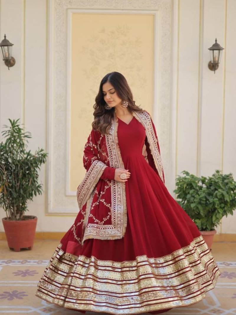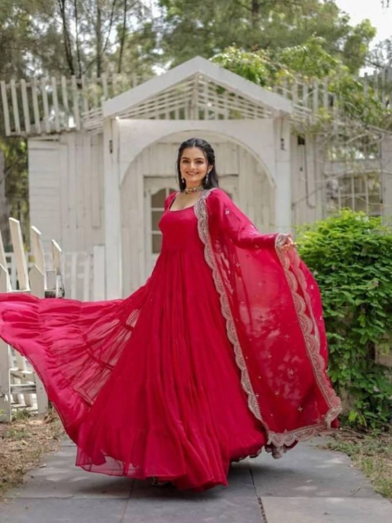 DC G38 Festive Wear Georgette Full Sleeve Gown With Dupatta At Wholesale Price