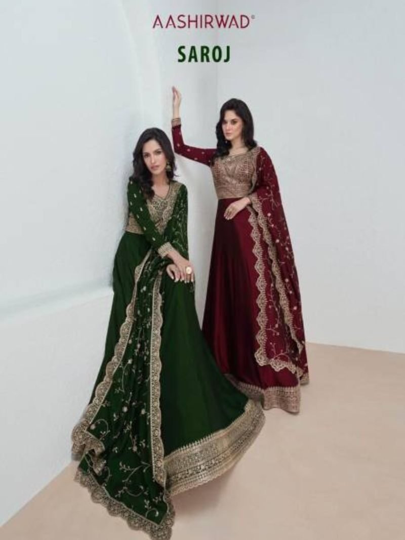 Aashirwad Saroj Heavy Designer Gown With Dupatta At Wholesale Price