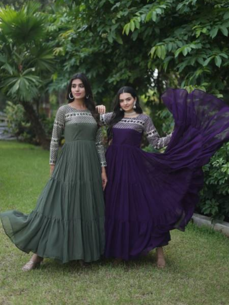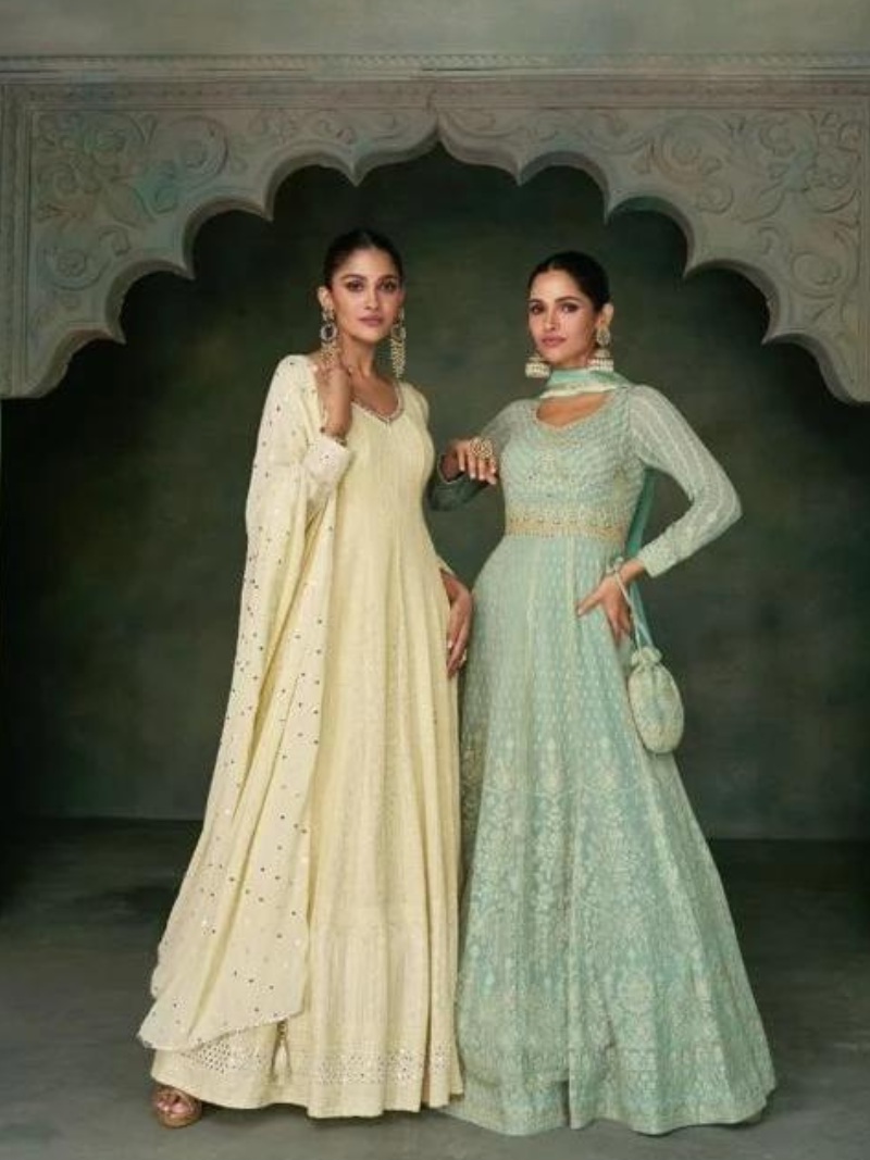 Sayuri Ameena Georgette Embroidered Wholesale Ethnic Wear Gown With Dupatta Catalog