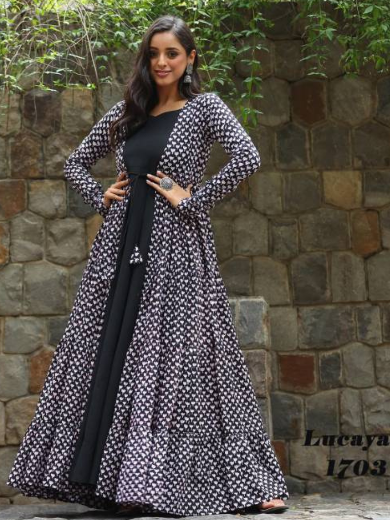 Lucaya Vol 17 Party Wear Faux Georgette Printed Shrug With Gown Wholesale Catalog