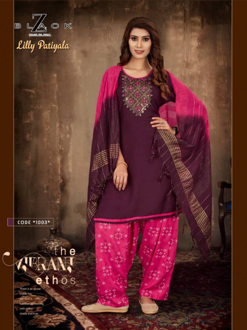Z Black Lilly patiyala Readymade Rayon Patiyala Suits Wholesale Catalog