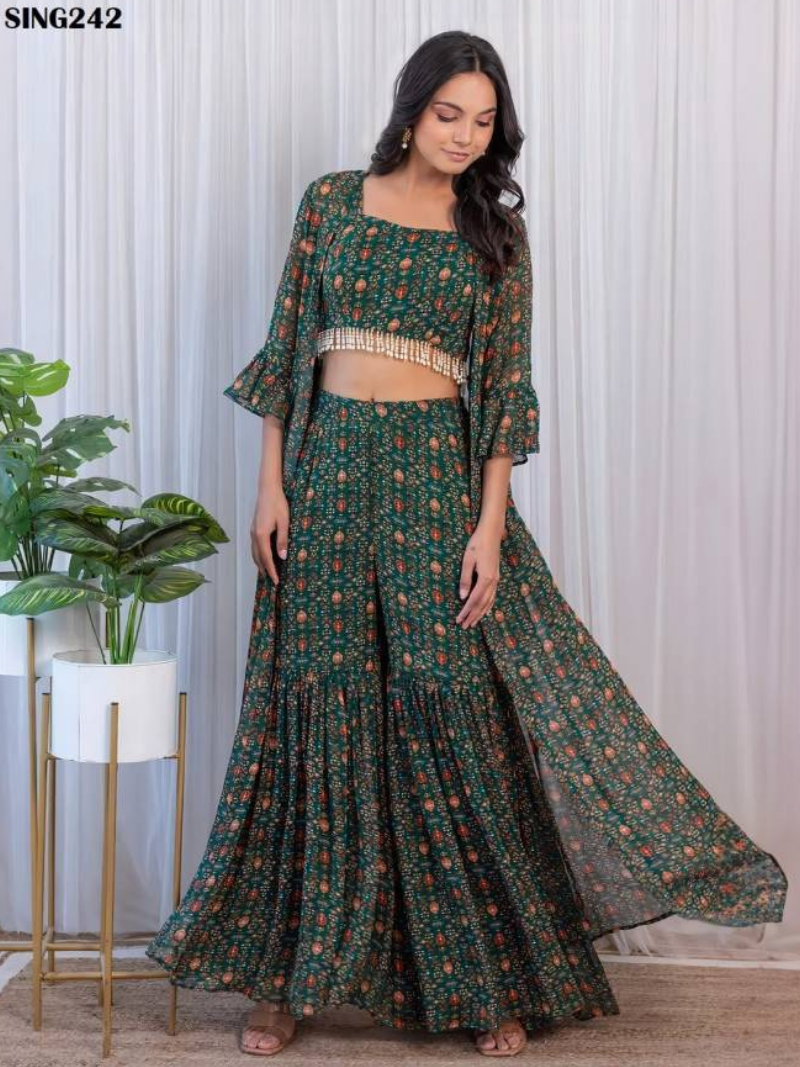 SING242 Green Designer Party Wear Sharara Readymade Suits Wholesale Catalog