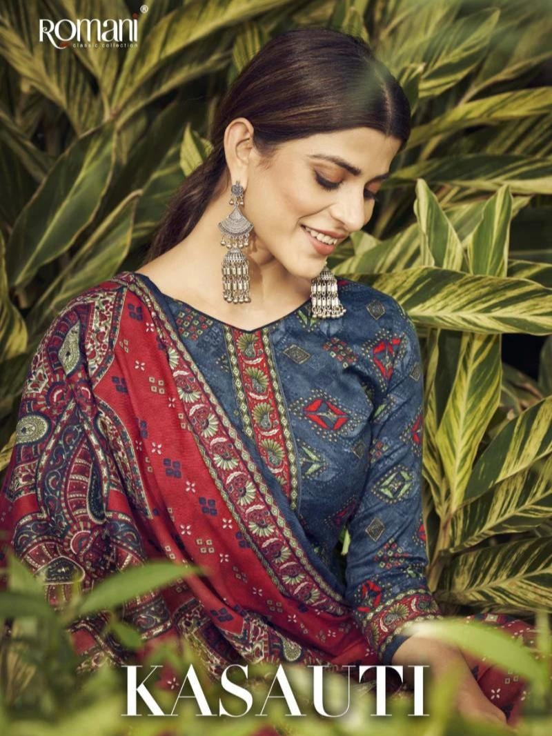 Romani Kasauti Winter Special Printed Pashmina Dress Materials Wholesale Catalog
